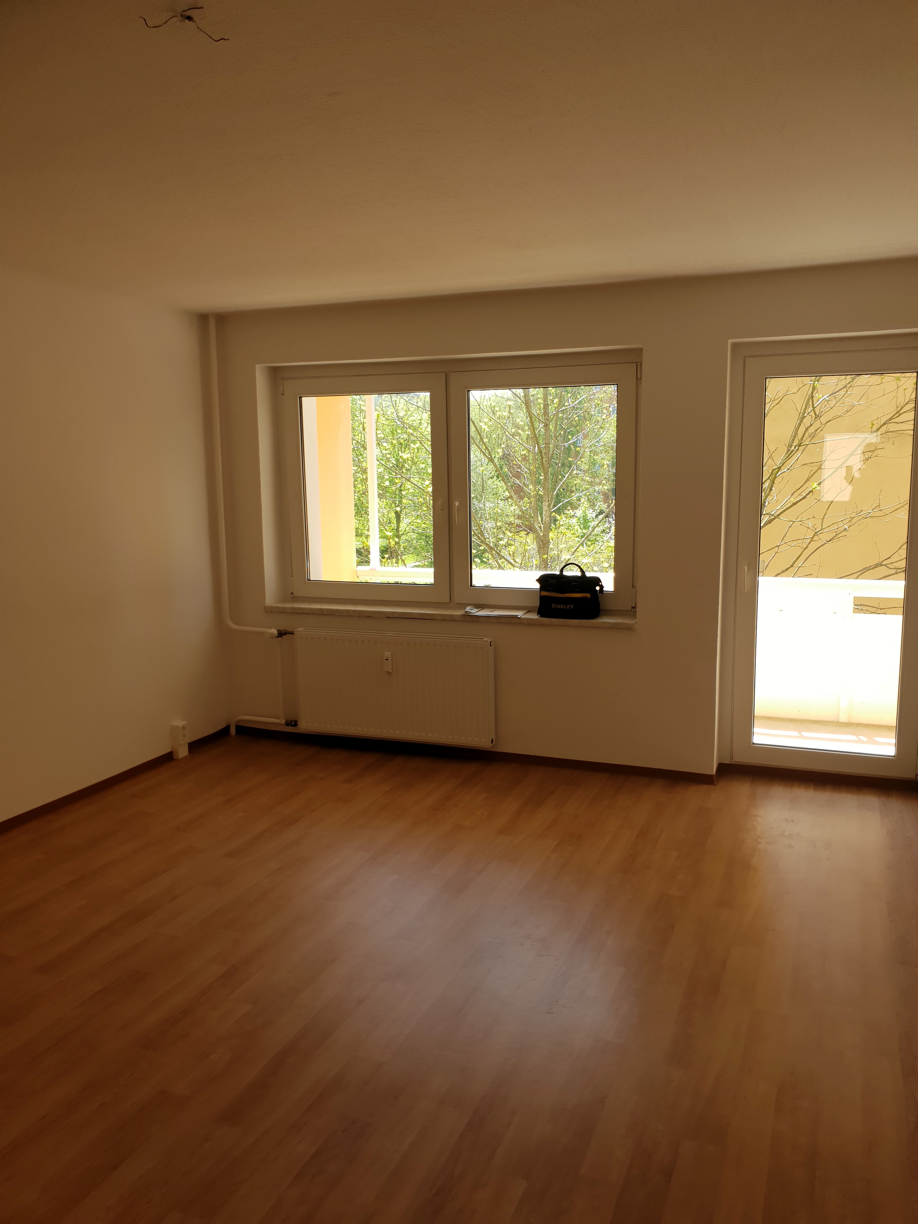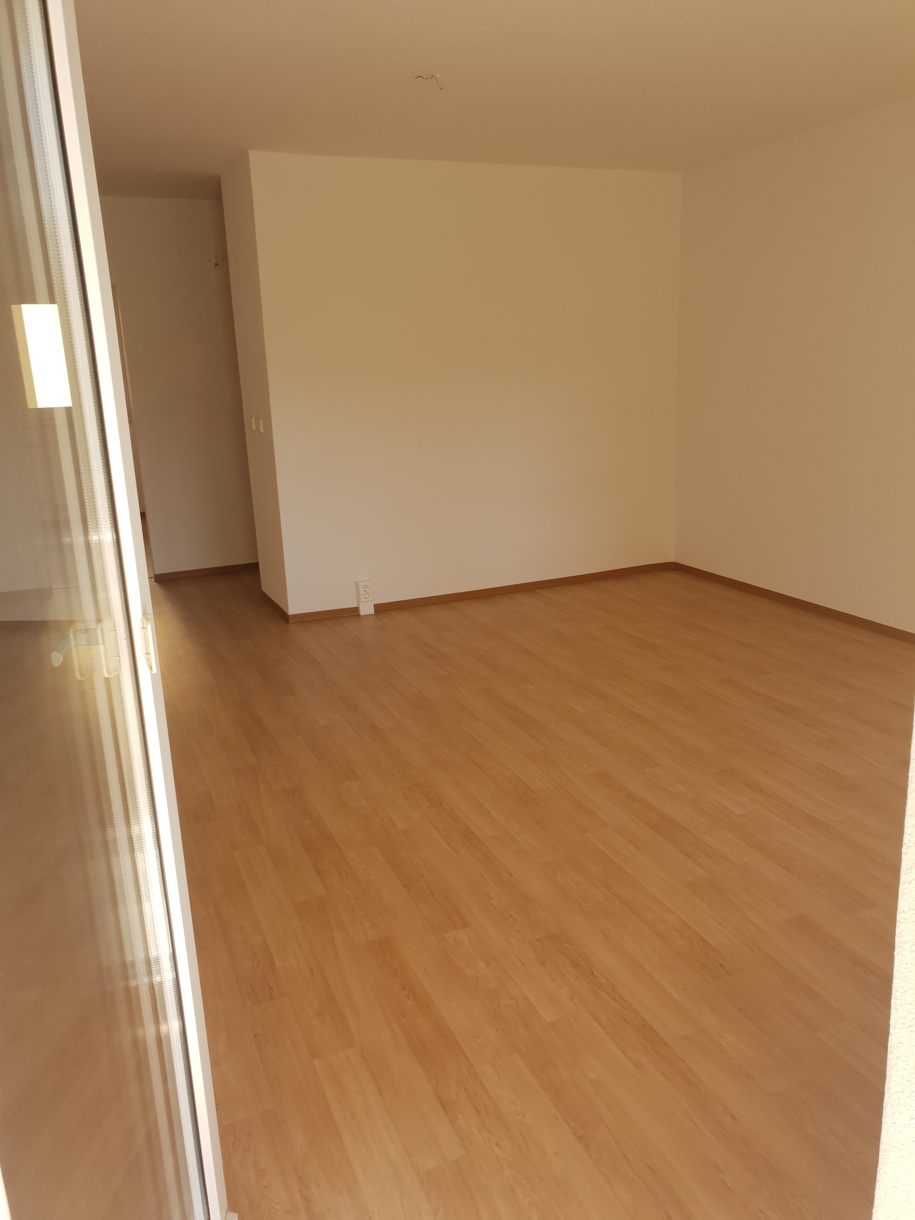 Die Wohnung ist vollständig mit PVC-Belag in Laminatoptik ausgelegt und